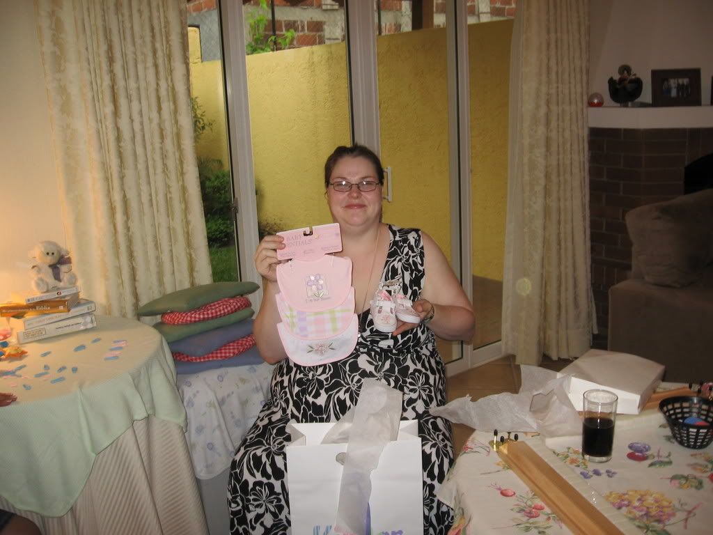 I have been washing things, left and right. That is a good sign, right? Also have been getting the bed ready, the chaging table ready, the carseat ready, todos. We washed the car seat padding (just in case of what, not sure. it was new...just washed it because it gave Carmen something to do). I really got in the nesting mode and wanted to wash everything. Well I bring it down and she runs up and grabs the basket from me and asks "any special instructions?" I guess she wanted to do that. I told her all baby stuff with baby laundry soap.