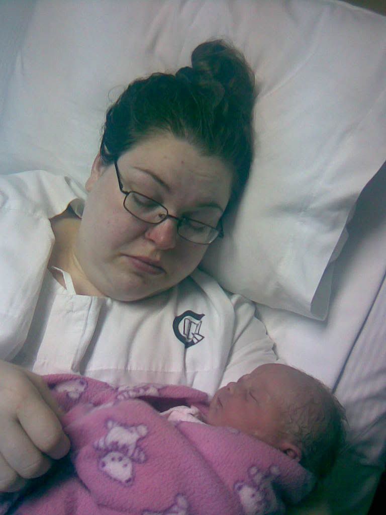 This is me on the day she was born. See how out of it I look? They have great drugs here.