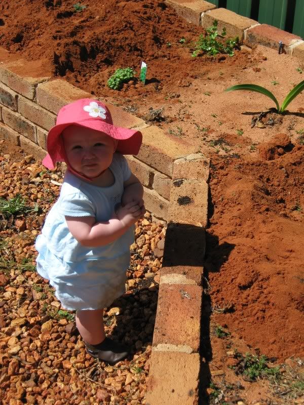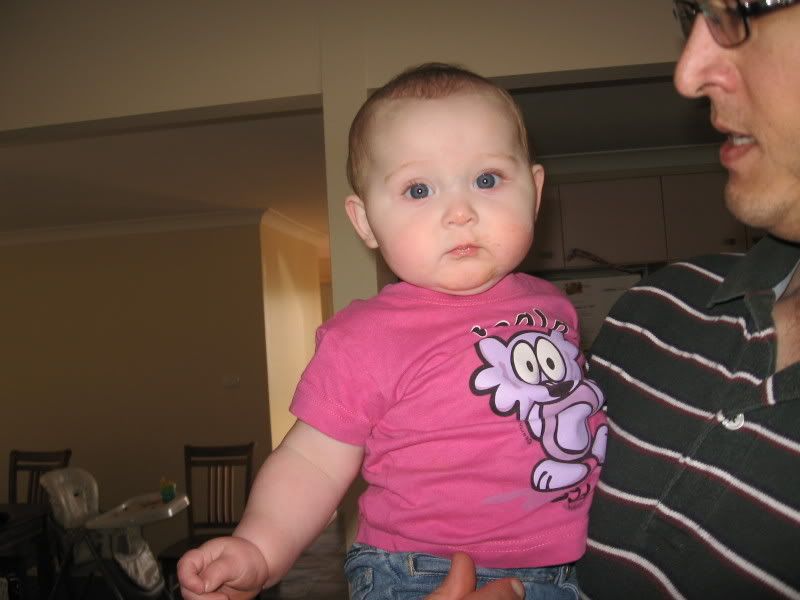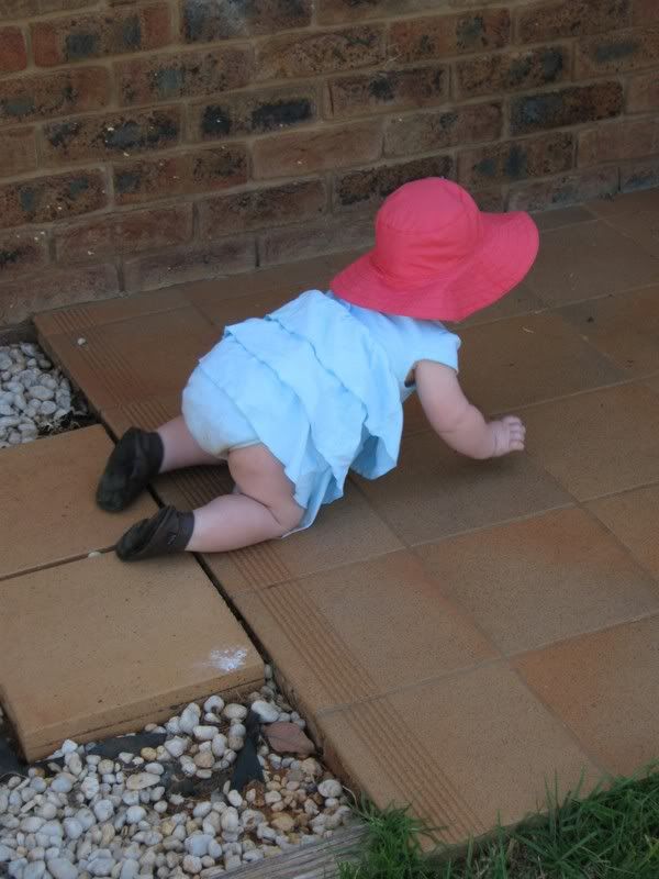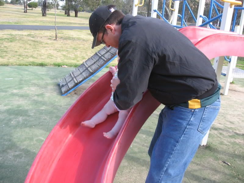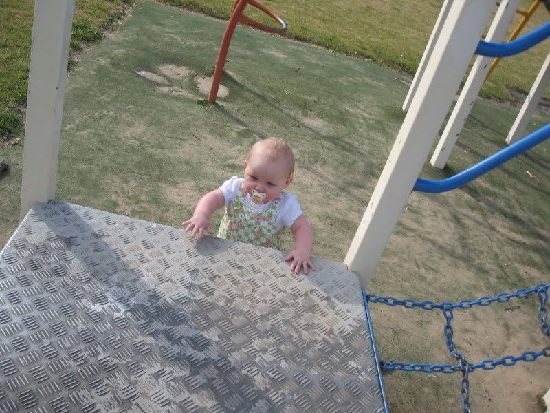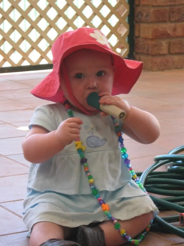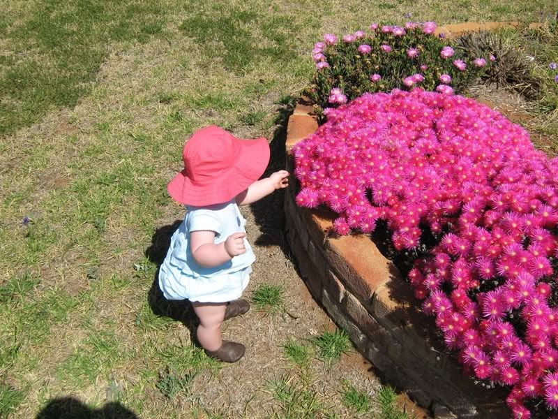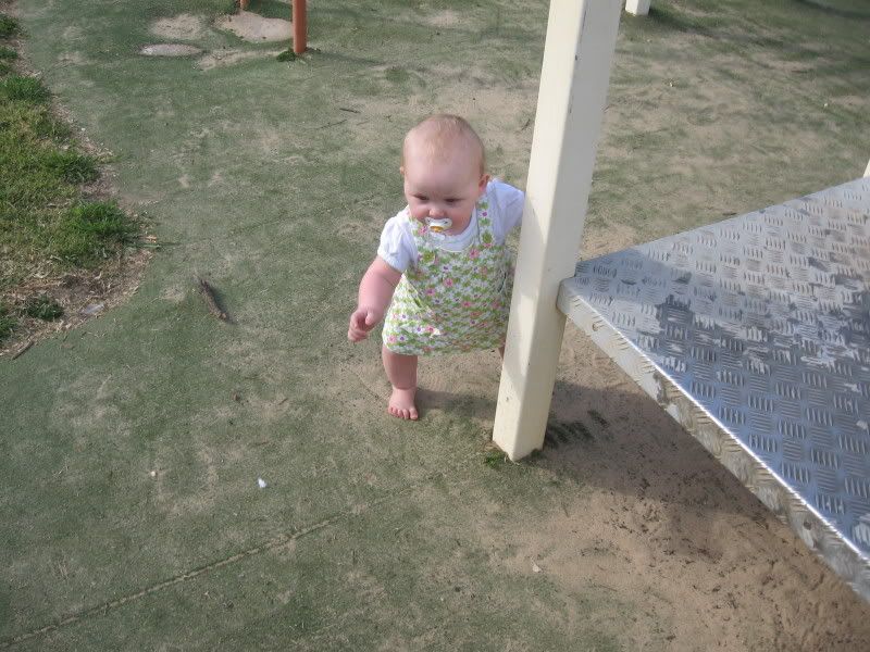 In the last couple of days, I have gotten out the camera more have taken these all in the last fortnight. Since it is now warmer, we are trying to get Helen outside more and more. She likes to play in the grass now, and when we traveled to Dubbo last, we stopped both ways at a local park for her to get out and stretch her legs. I think we might see some walking here in the next month or two. Everyday she is working on it and it is amazing to see how close she is. She has taken a step or two but then immediatly falls down. When she walks with us, she does not lean on our hands. I think she thinks she can't walk without us. One of these days, she will get up and walk across the house as if she has always had. She did that with crawling, I can imagine that walking would be the same.