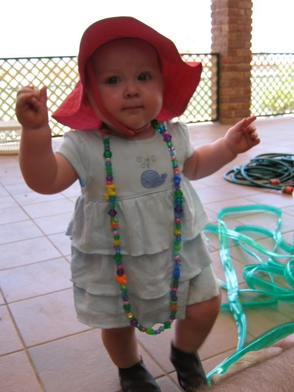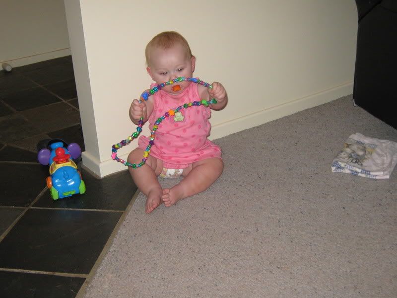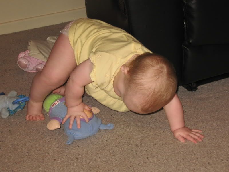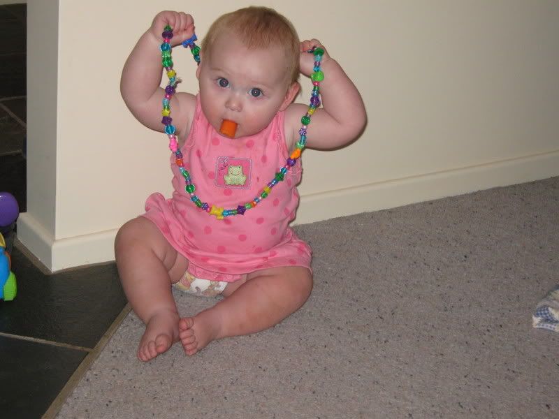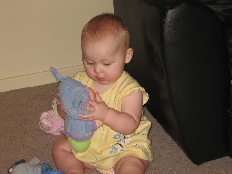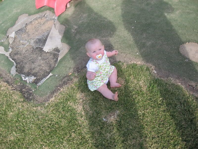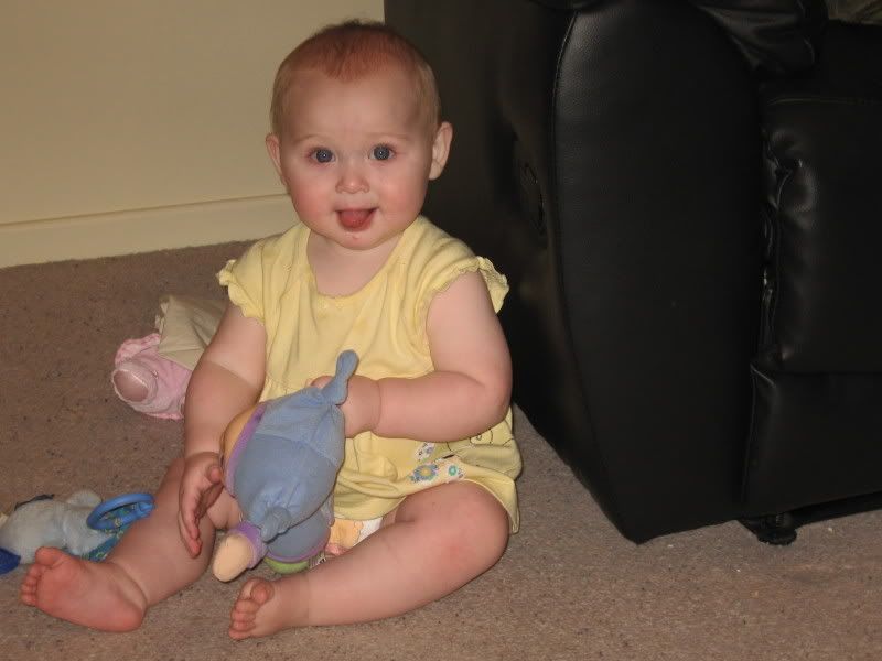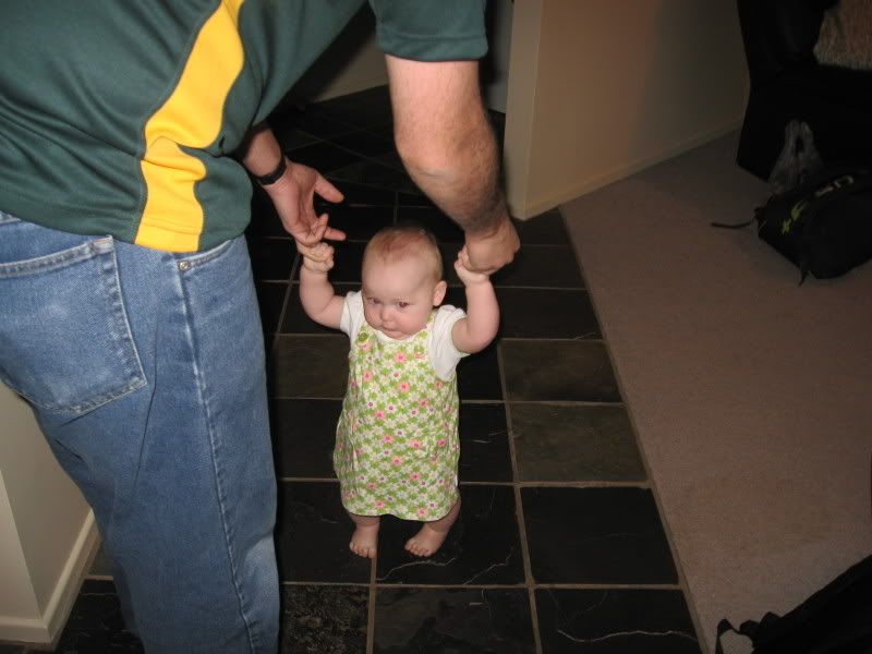 In the last couple of days, I have gotten out the camera more have taken these all in the last fortnight. Since it is now warmer, we are trying to get Helen outside more and more. She likes to play in the grass now, and when we traveled to Dubbo last, we stopped both ways at a local park for her to get out and stretch her legs. I think we might see some walking here in the next month or two. Everyday she is working on it and it is amazing to see how close she is. She has taken a step or two but then immediatly falls down. When she walks with us, she does not lean on our hands. I think she thinks she can't walk without us. One of these days, she will get up and walk across the house as if she has always had. She did that with crawling, I can imagine that walking would be the same.