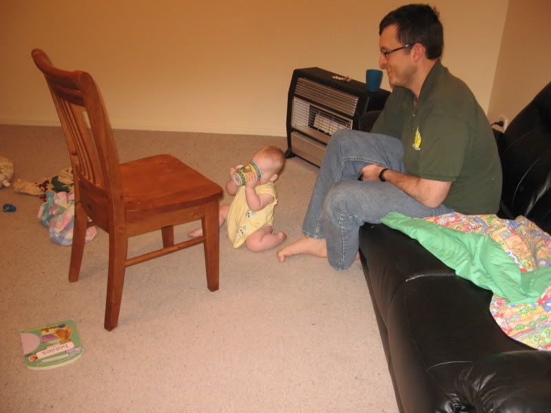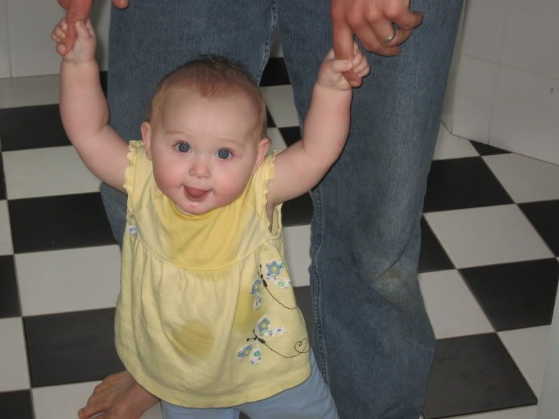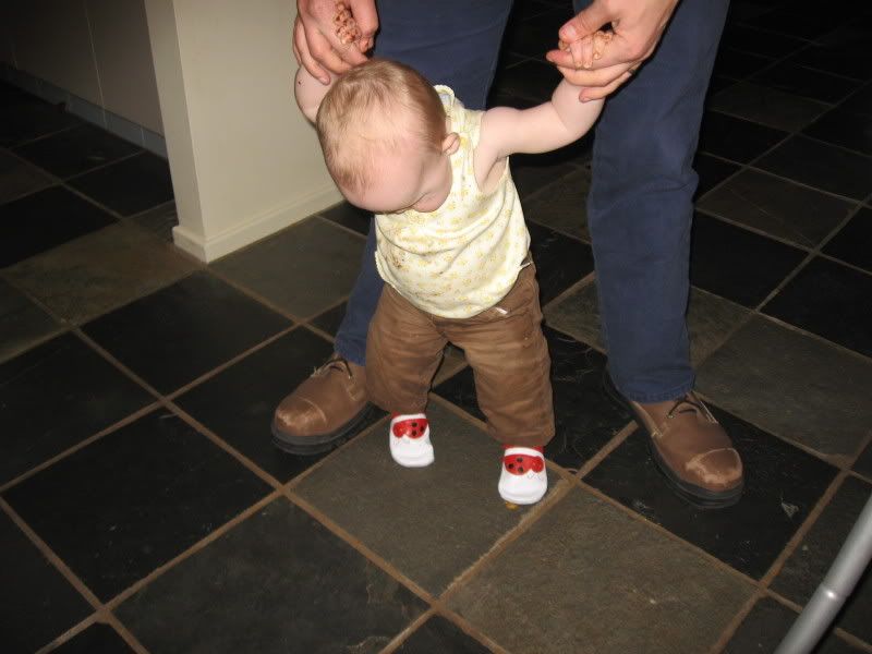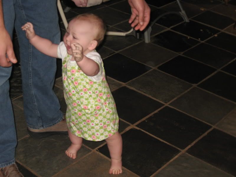 Sunday was a pretty good day. Woke up to Austin's birthday (Happy Birthday!) and got ready for Helen's birthday party. Austin had just settled down on the couch with his coffee and she decides to get up and walk over to Austin. She took about 8 steps in a row and it ended up with a hug by daddy and a very surprised mommy. She has not done that since but she is now taking a step or two by herself and getting better at it. All in the practice I guess.