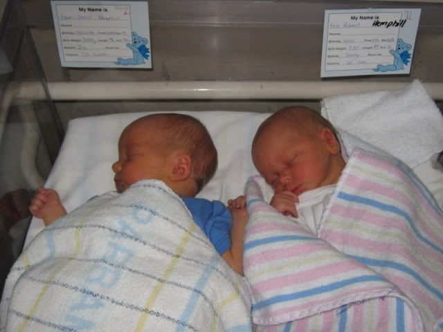 Anyways, Twin one was born Jason David Hemphill, 3.18 kgs, 49 cms and 15:43.