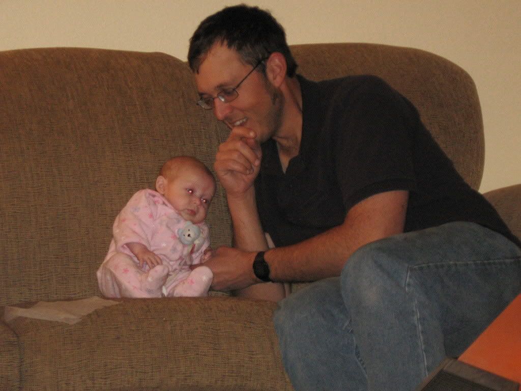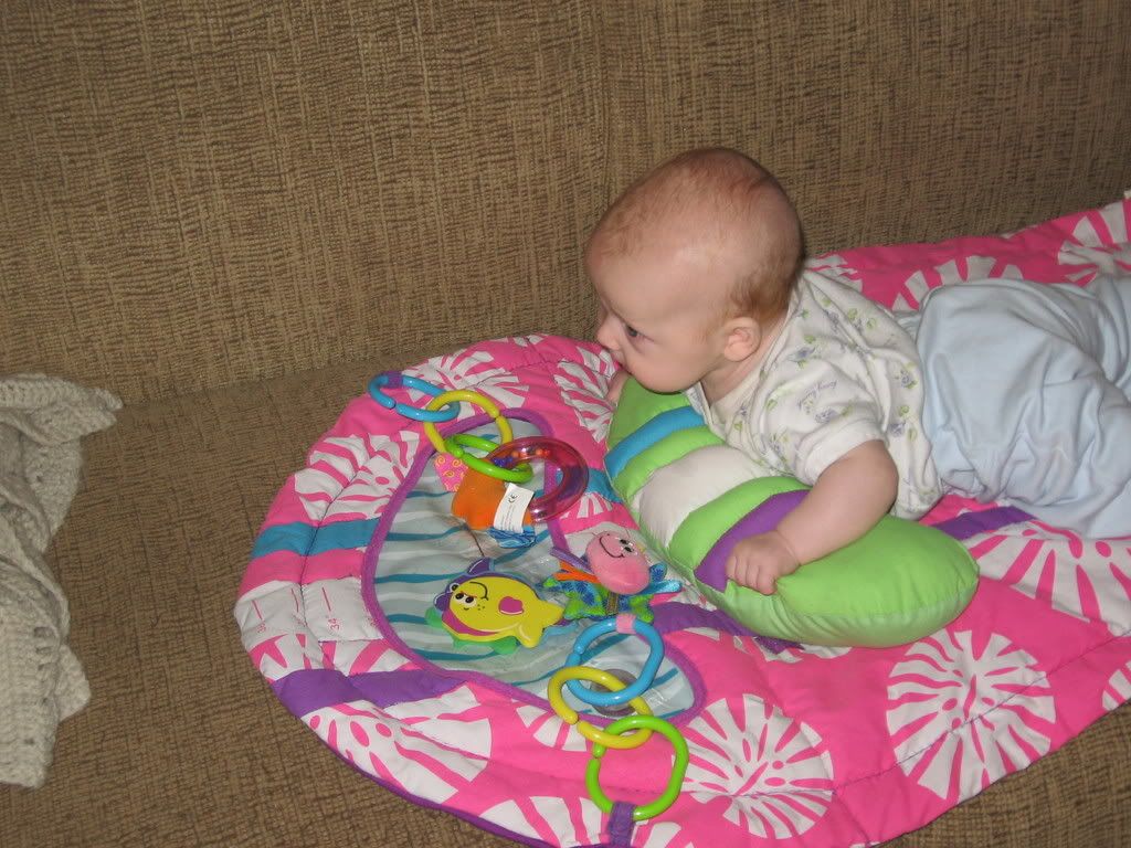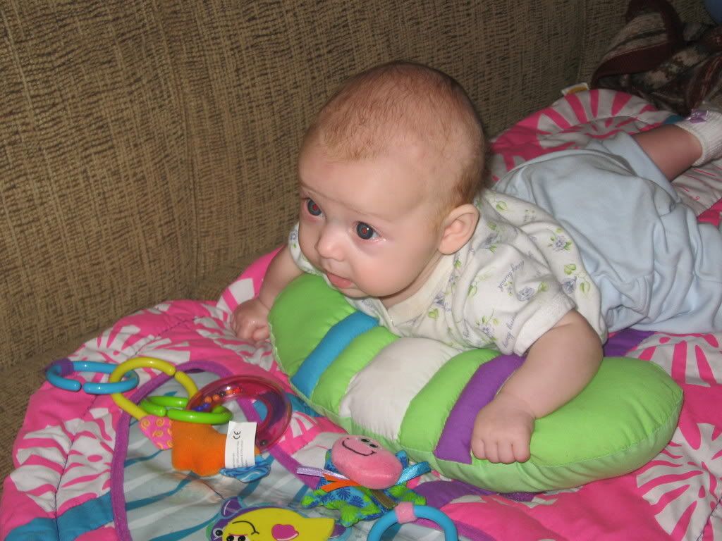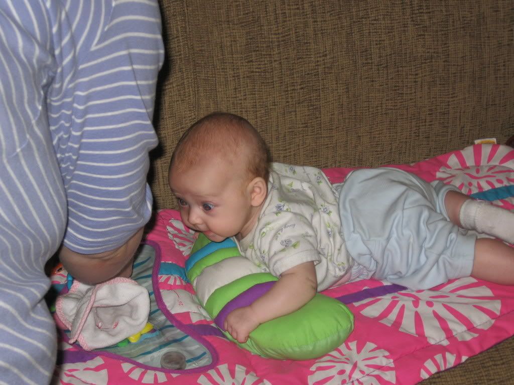 She is starting to sit up so here is she with Austin "sitting" on the couch. Sometimes she needs a bit of help....