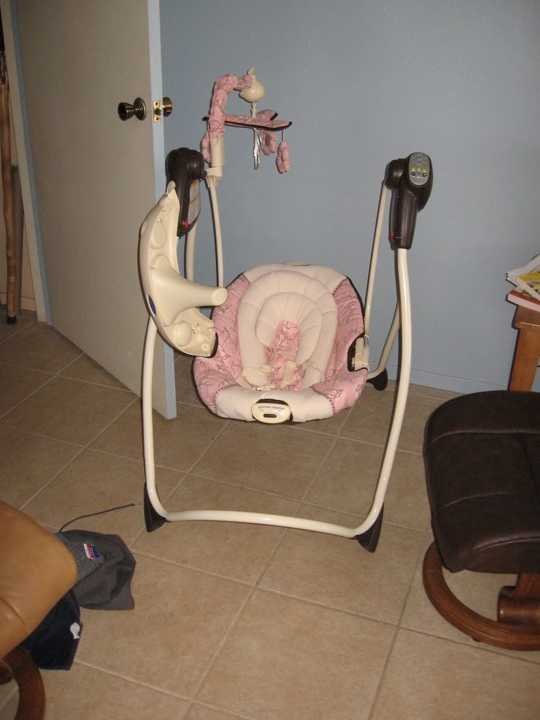Here is Helen's Swing. 'Mo (Lenore) got it for her for Christmas and it is like heaven. I could kiss the guy (or gal) that created this thing.