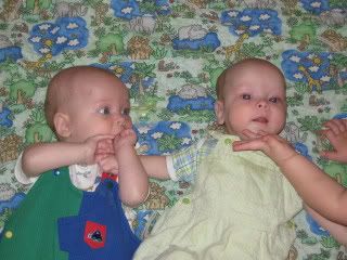 Jason and Erik in bed. Jason like to touch people. He is always reaching out to touch Erik, me, daddy or anyone really. He is a feeler. I have a feeling he will be in big trouble when he gets to be about 14.