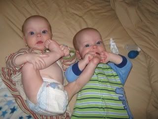 Just playing on the floor. Jason (left) always likes to cross his feet.
